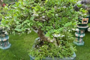 Mai Vạn Phúc là loại cây cảnh nổi bật với lá nhỏ – xanh mướt – dày và mịn, tạo cảm giác tinh tế và trang nhã. Nổi bật nhất là hoa trắng tinh khôi, nở thành chùm, có hương thơm dịu, mang lại sự thư thái và sang trọng cho mọi không gian. Khi được tạo dáng bonsai trên chậu, Mai Vạn Phúc trở thành một tuyệt phẩm nghệ thuật với giá trị thẩm mỹ cao.